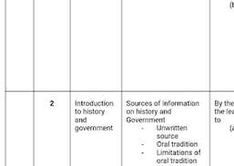 Den innehåller ett arbetsschema för historia och regeringsämne för gymnasienivå med start från form ett från form två form tre och form fyra. Det är en kort analys av ämnet man lärt sig i gymnasiet. som gör det möjligt för lärare och elever att planera sin egen tid för undervisning och studier därefter.