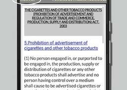-Fyll i lagen "Cigaretter och andra tobaksprodukter (förbud mot reklam och reglering av handel och handel, produktion, leverans och distribution), 2003" i digitalt format. Kräver inte internetuppkoppling för att se dem