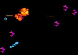 Samla klot för att öka både din poäng och storleken på din polymer. Ju fler klot som är anslutna till ditt skepp, desto fler powerups tjänar du vilket gör det lättare att överleva fiendens attacker och slå tillbaka med dina egna.