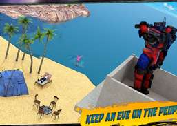 FromGreat Games Studio: Gillar du livräddare räddning spel? Detta är vår lysande post i strandräddnings spel som unikt innehåller en kombination av livräddare spel med robot spel. Vi presenterar du en underhållning fylld robot strand övervakning trupp, patrullerar i sin jeep, fullt utrustat med livräddningsutrustning. Människor njuter av en solig dag på stranden men det finns individer som inte kan simma, rookies kan kämpar för att klara sig med hänsynslösa gigantiska vågor, även veteran simmare kunde sätta sig i trubbel på djupt vatten. Vår transformerande hjälte med sina vackra transformerande förmåga att konvertera till flera maskiner kommer att använda kikare för att se upp för alla som behöver hjälp. Folks, när du identifiera en drunkning person, måste du konvertera din bot i en lämplig vehikel för att närma sig i minst möjliga tid
