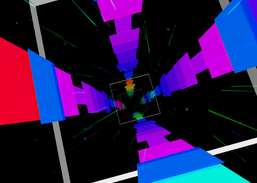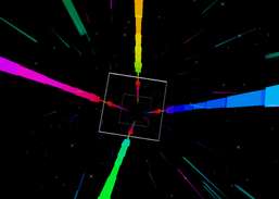 Flyga genom en technicolor, musikreaktiv rymdkorridor i stereoskopisk 3D
