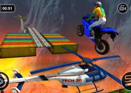 Kör motorcykel på himmelhöga omöjliga spår för att utföra galna stuntkörning