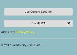 Alerts.City, Duvall, WA'ya odaklanan d.jimgale.net'ten büyüdü. Alerts.City şu anda Amerika Birleşik Devletleri'ne hitap edebilir ve gelecekte daha fazla ülkeye hitap edecektir. Şu anda, hava durumu uyarıları ve tahminleri dışında, veriler şu anda yalnızca Seattle bölgesinin yakınında bulunmaktadır.