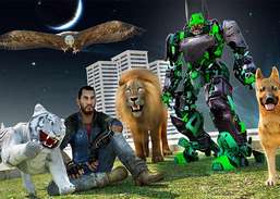 Süper Çok Robot. Polis köpeği, demir kartal, kükreyen aslan ve vahşi kaplan gibi hayvanlara dönüş ve yabancılar, teröristler ve intikam almak ..
