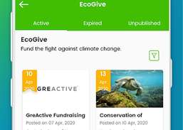 EcoGive kampanyaları oluşturun, göz atın ve finanse edin.
