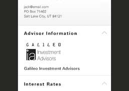 Galileo Money+, yüksek faiz oranı, düşük hesap ücretleri ve FDIC sigortası ile banka hesapları sunar. RIA'larla yalnızca, her bir RIA'ya göre özelleştirilmiş özel bir bankacılık deneyimi sunmak için ortaklık kuruyoruz ve üyelerimize beyaz eldiven hizmeti sunuyoruz. Müşterilerin çıkarlarının önce gelmesi ve ilginizin daha fazlasını cebinize koyması gerektiğine inanıyoruz.