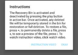 Bu Uygulama tam olarak bilgisayarınızdaki geri dönüşüm kutusu gibi çalışır. Kurtarma Kutusu, oynat düğmesine basılarak etkinleştirilir ve devre dışı bırakılır. Etkinleştirildiğinde, sildiğiniz herhangi bir dosya geri yükleme veya tamamen silme için çöp kutusunda görünecektir.