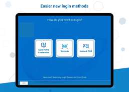 * 使用他们的姓名和出生日期、CarePortal 凭据或条形码扫描仪登录应用程序以验证其身份